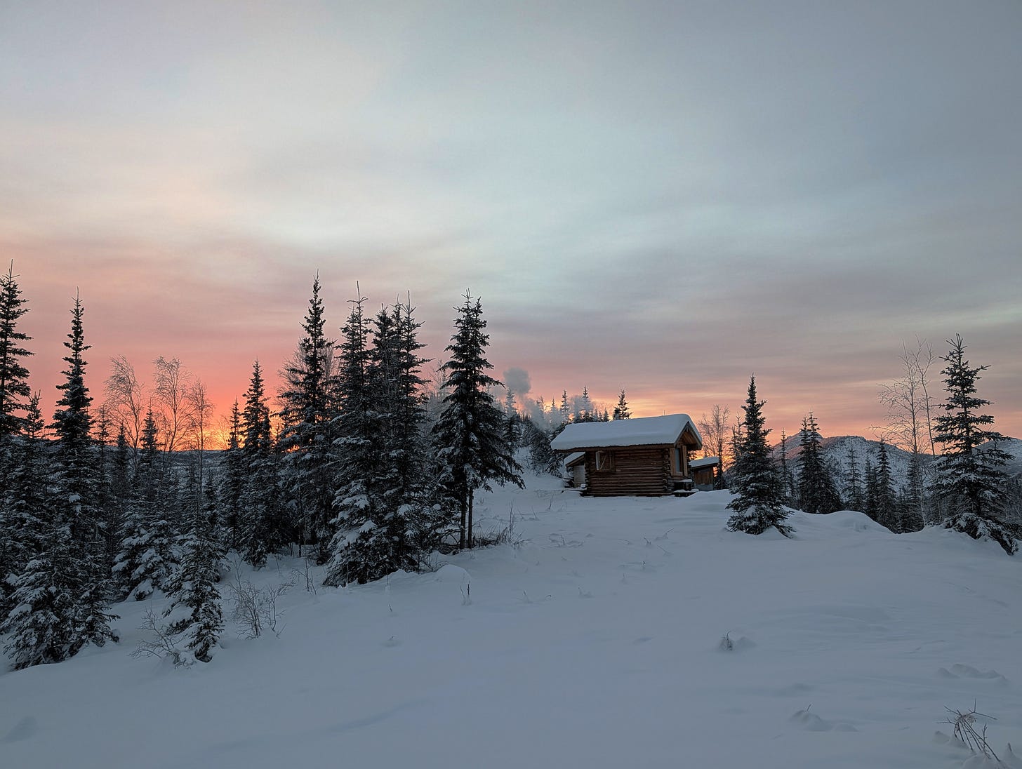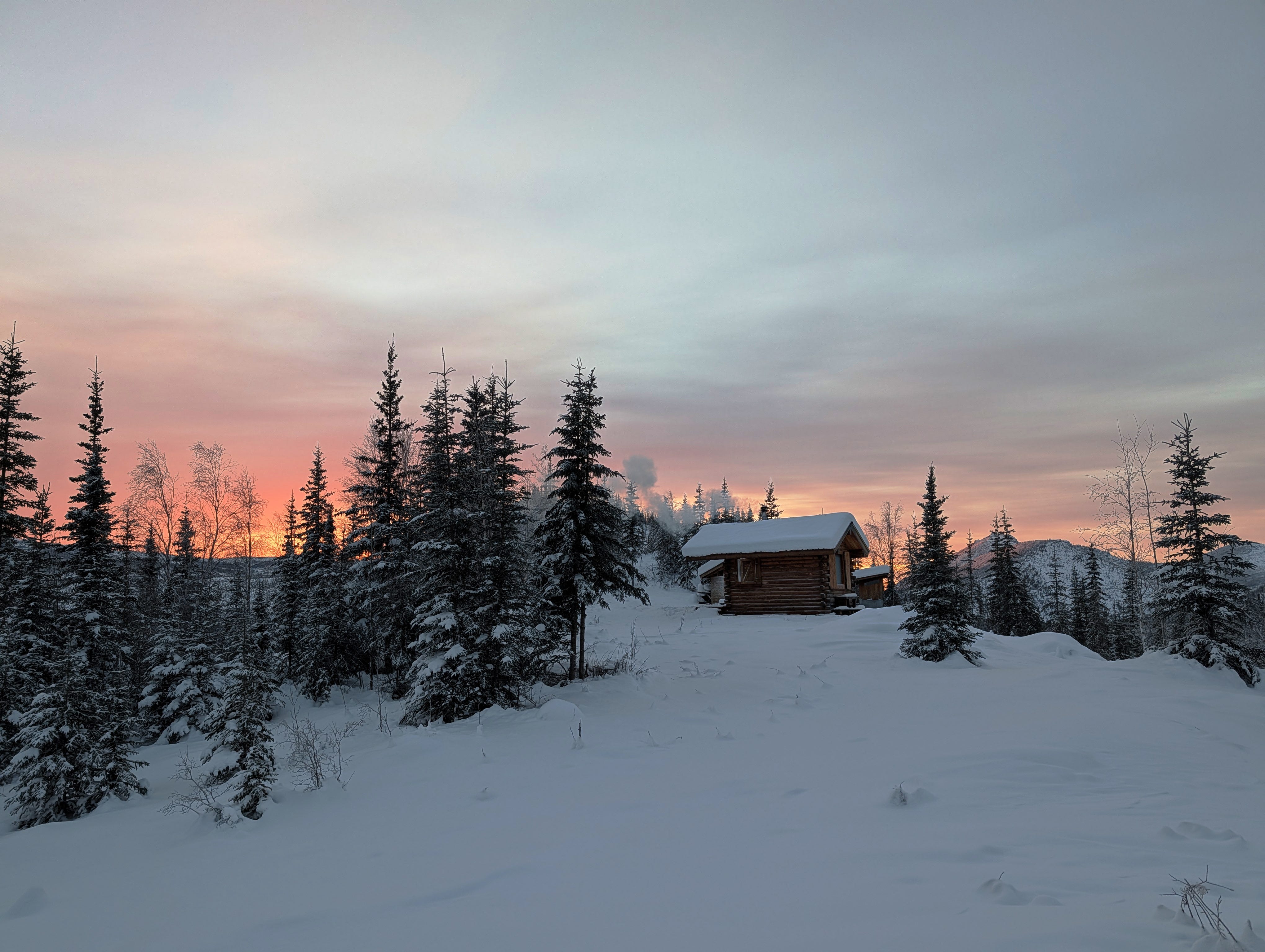 After another 19-mile, nearly 10-hour day, we climbed up to Eleazar’s cabin. The inversion was again sinking into the valleys, and it was again 15 below.