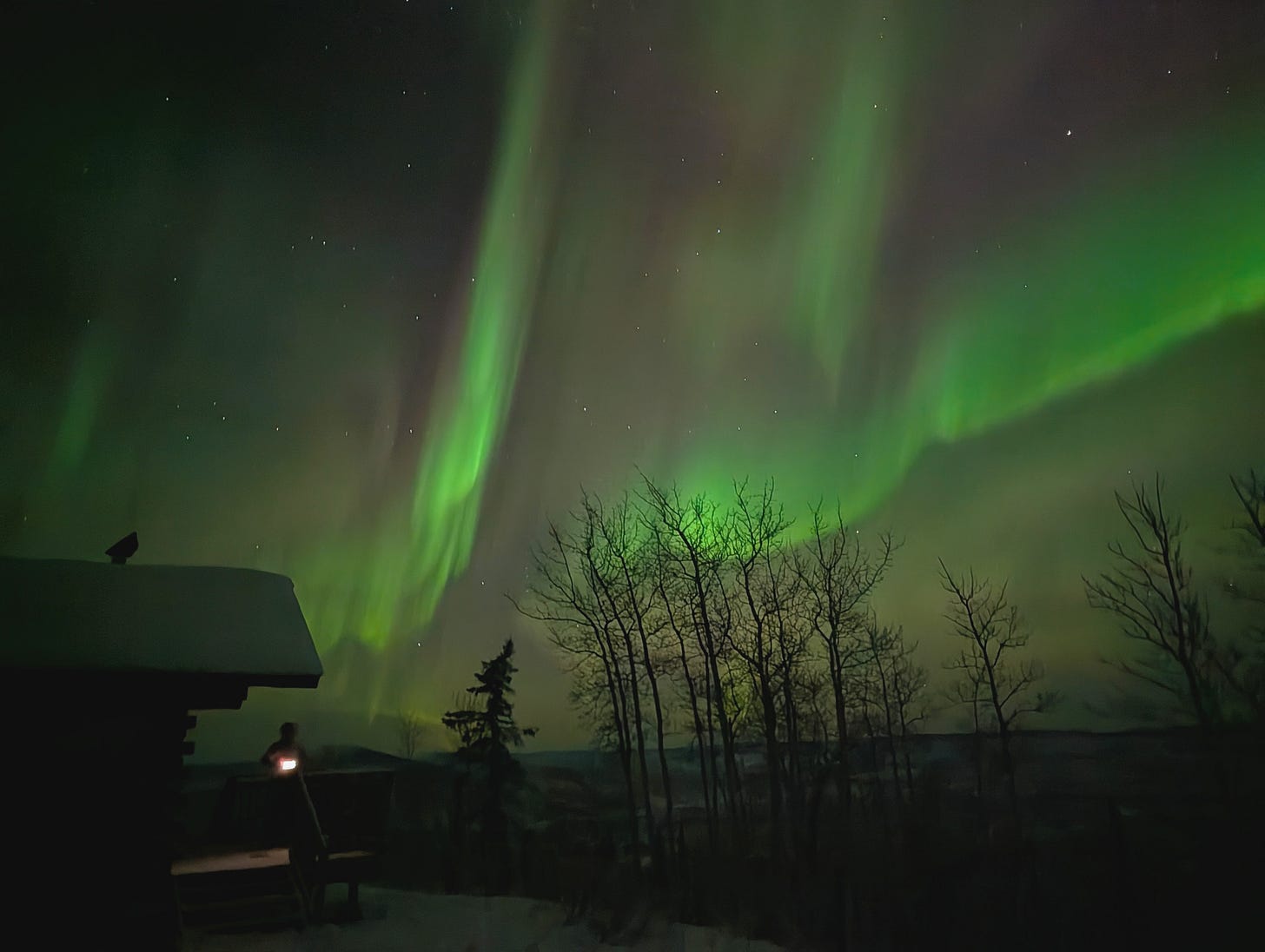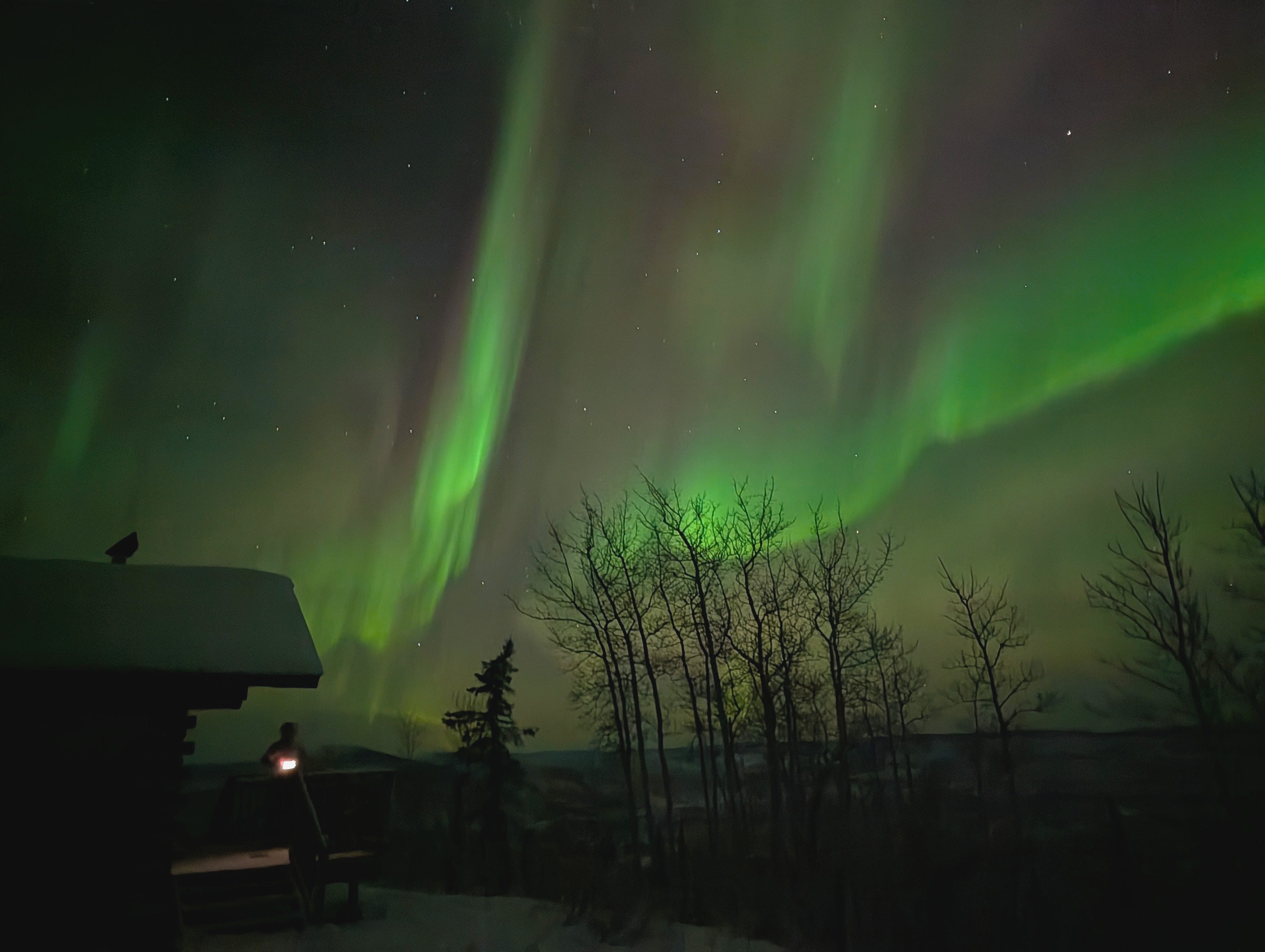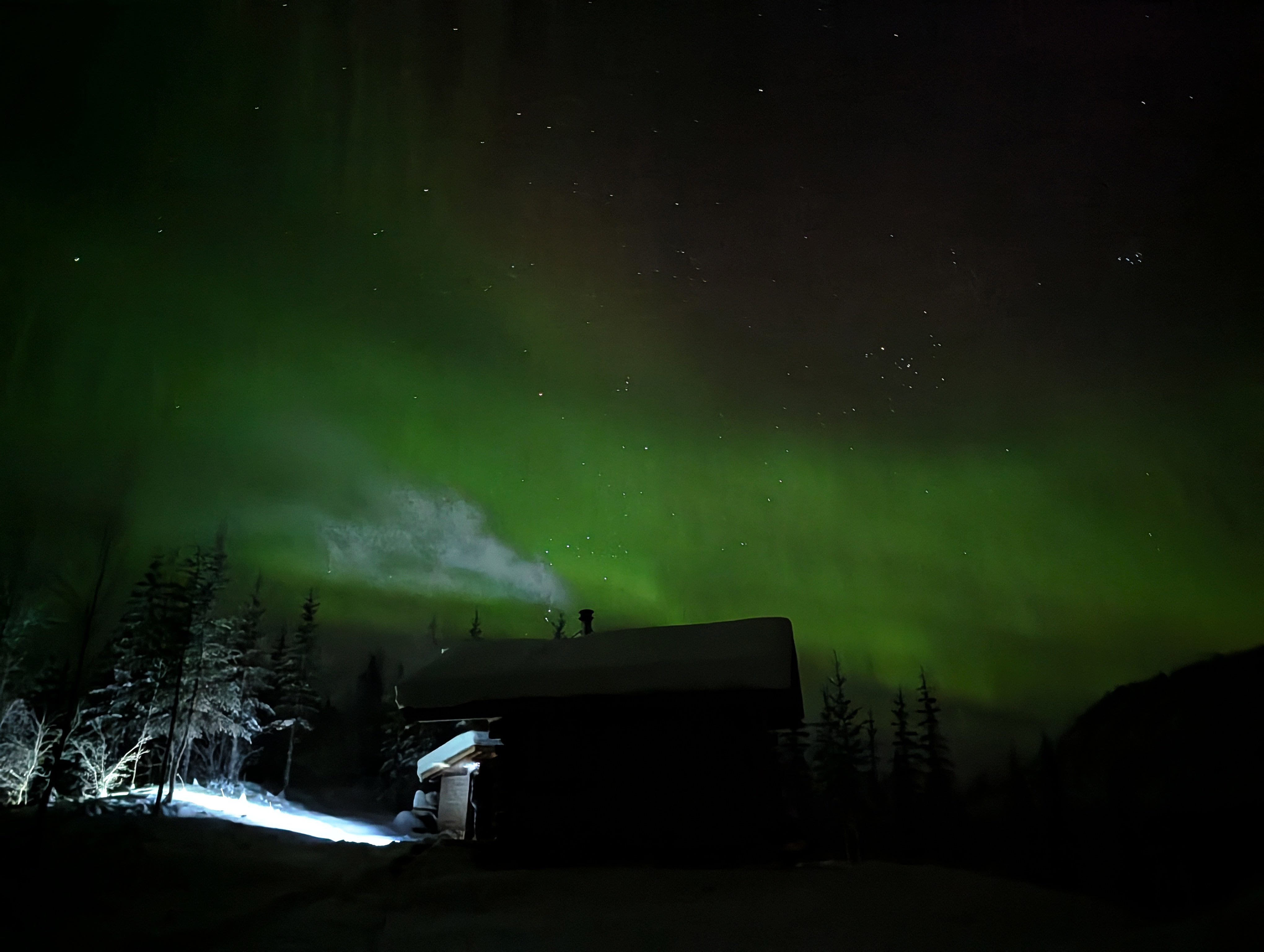 From my nearly 20 years lived in Fairbanks, I can relate to how -15F would feel absolutely balmy after 40 below. Love the first photo of Beat silhouetted in the beam of light and the aurora above.