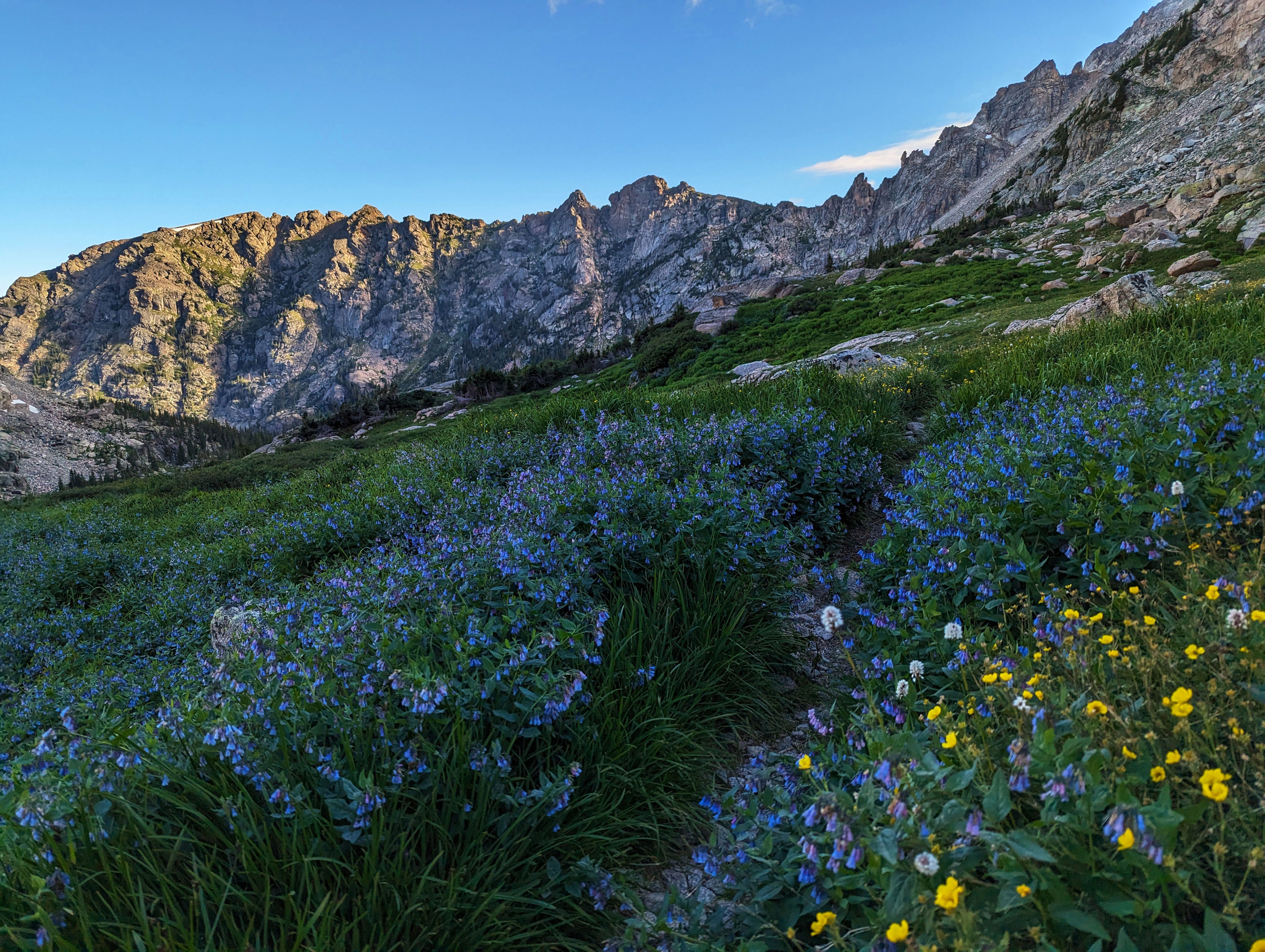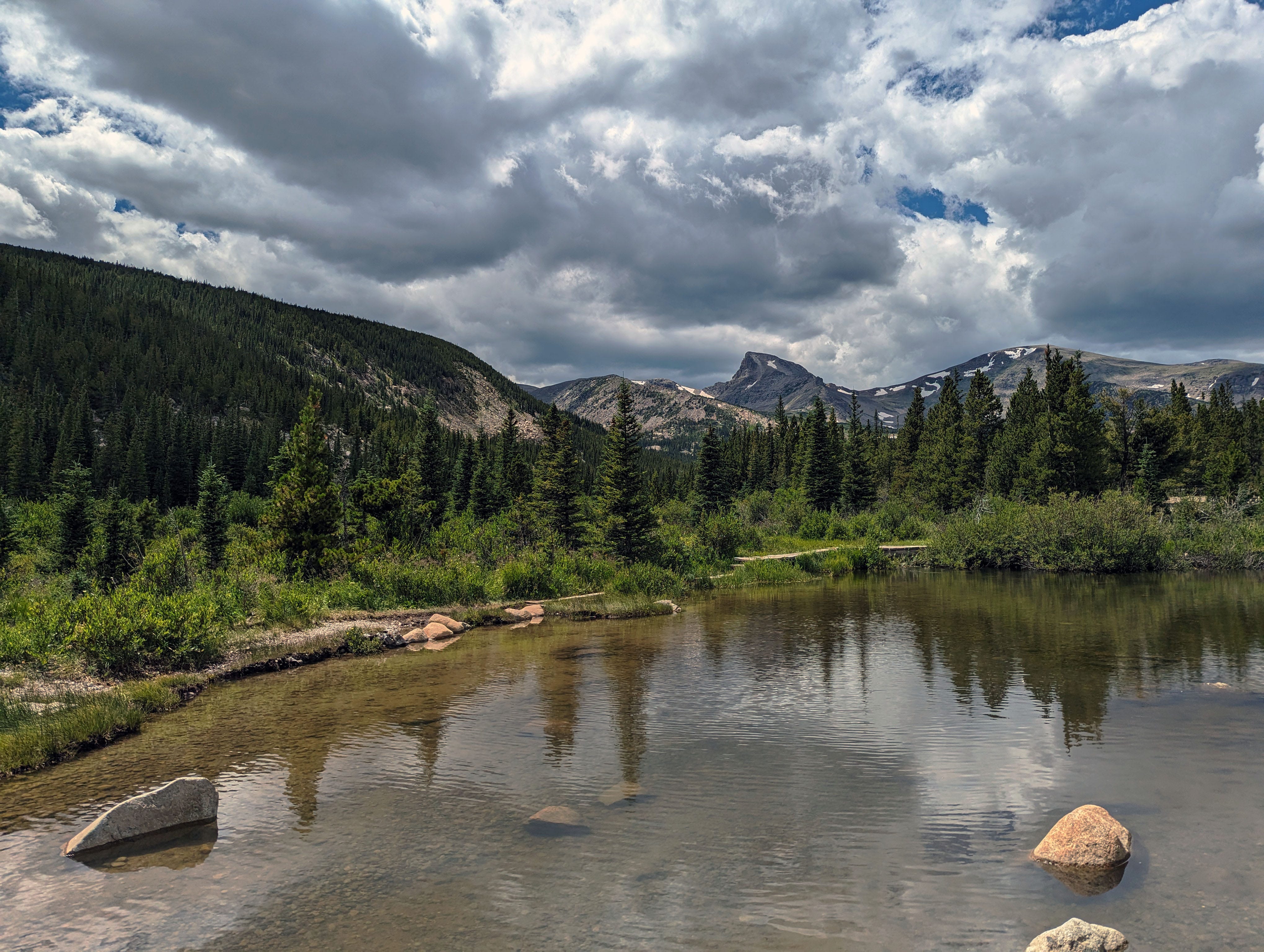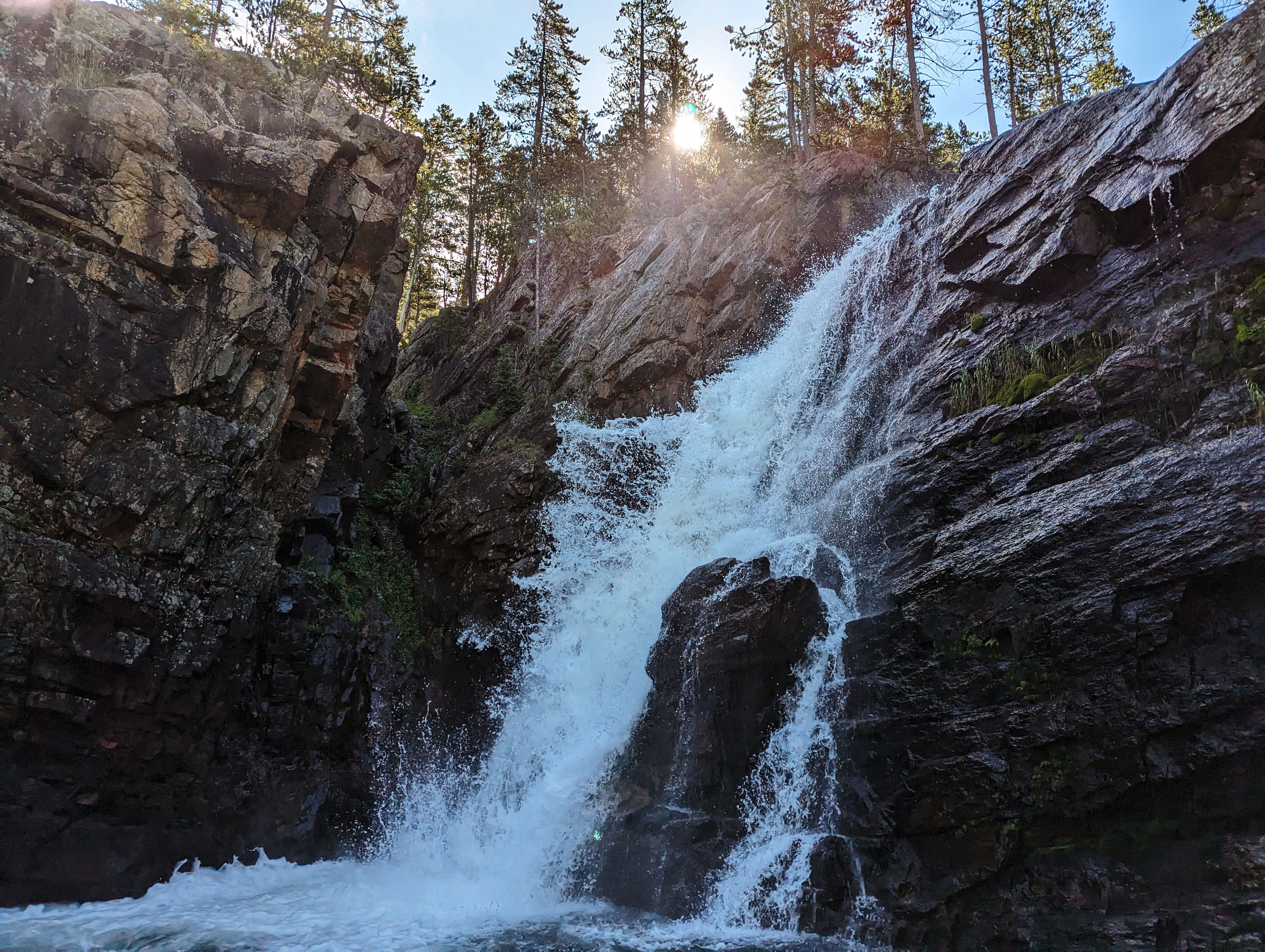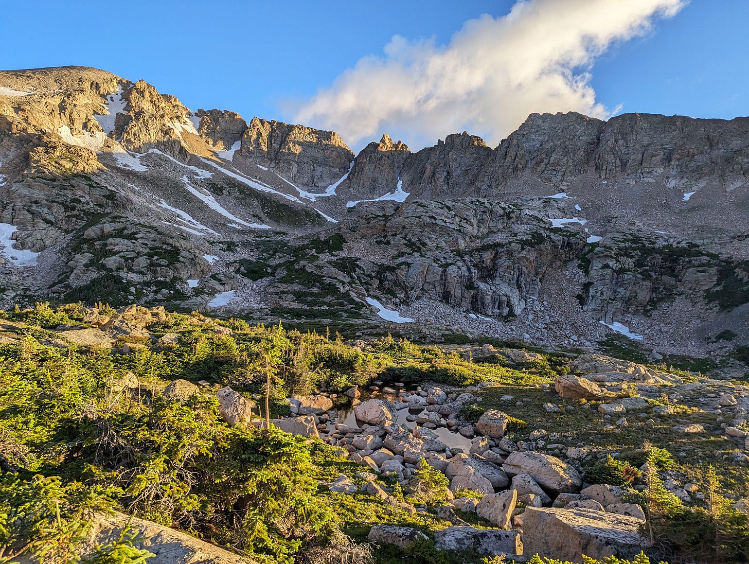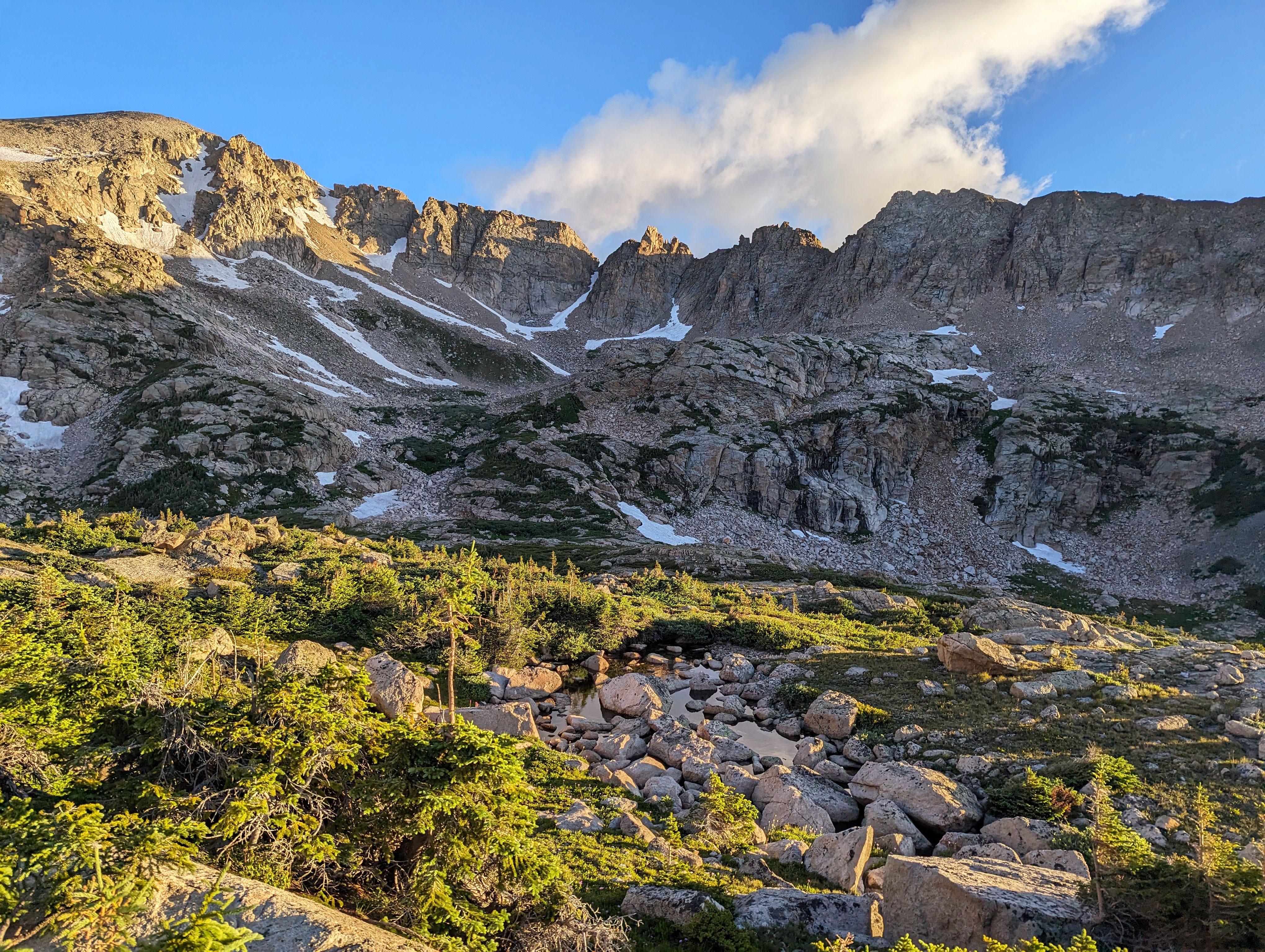 Luckily, I found my way to stable ground and eventually, the trail. Life was beautiful again. The Cascade Creek trail is popular for good reason — there’s practically one waterfall for every switchback — so I started to see other humans. Most of them were carrying big backpacks because it’s one of those “remote” places where backcountry camping isn’t regulated within an inch of its life. Pawnee-Buchanan is also a popular trail running route, so it’s interesting to note that I only saw one runner all day. I also chatted with a couple who’d been out in this small wilderness for five days, and I was envious. They told me they’d been thundered on every day, so I felt less envious.