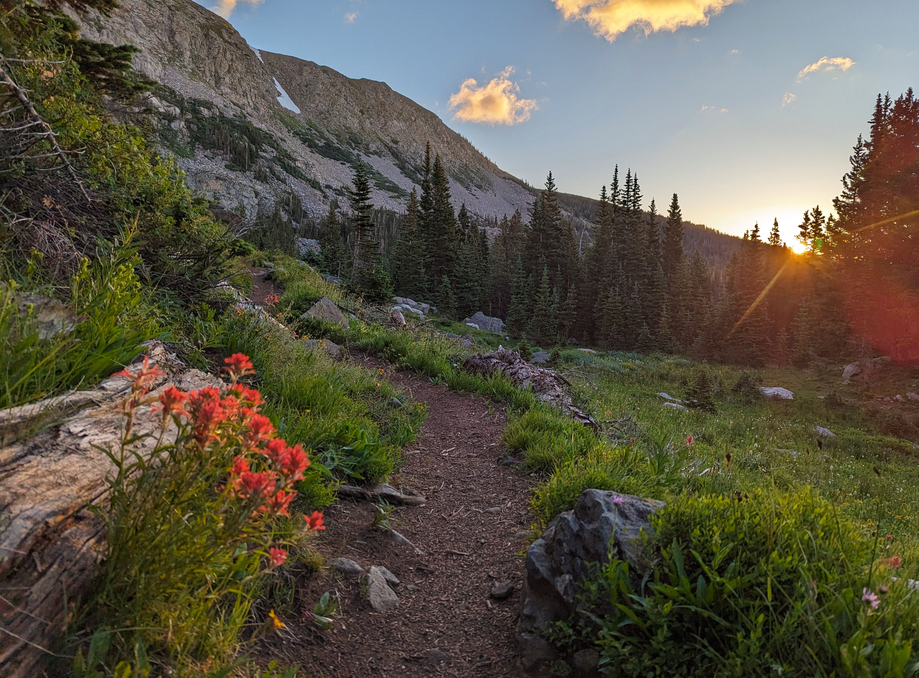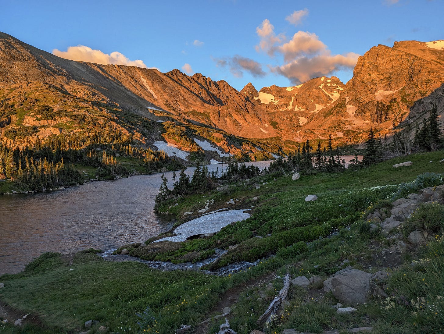 Dawn is a gorgeous time of day, even if I’m usually too much of a zombie to appreciate much about it. After running away from the creepy drone guy, I saw no other humans for the next five hours. I’d never visited Lake Isabelle when it hasn’t been an absolute zoo. I have to say, it might just be the most peaceful place on Earth. The sun crept over the eastern horizon, casting the mountains in an electric shade of orange. It was all stunning and I was in bliss. I remembered why I love the mountains.